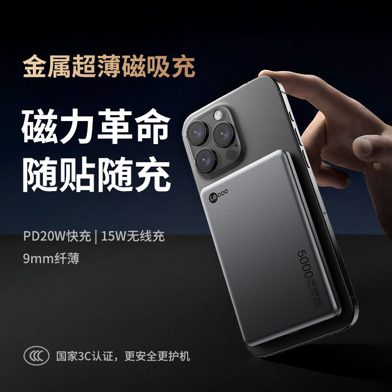 超薄磁吸无线充移动电源PB5LD丨PD20W快充丨15W无线充丨9mm纤薄丨智能温控