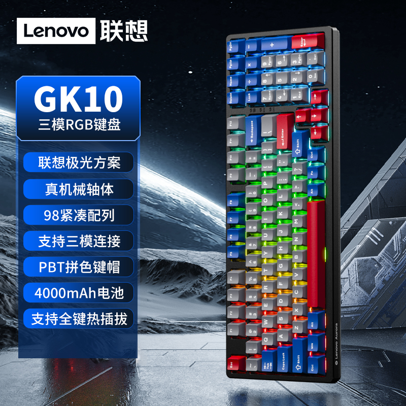 联想极光机械键盘GK10 三模版 98键青轴黑色