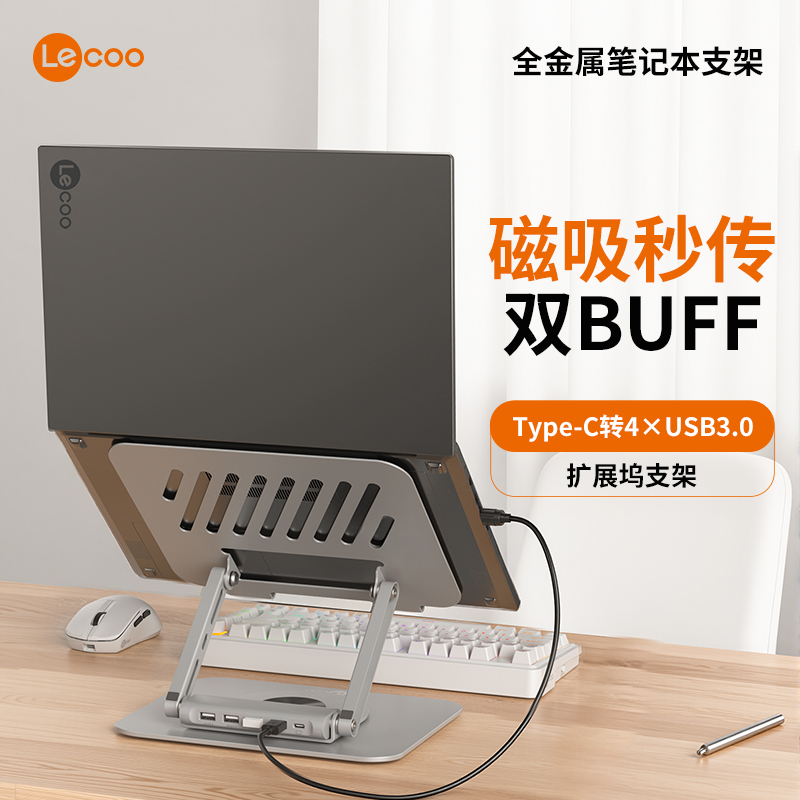 联想来酷笔记本电脑支架 四合一扩展磁吸秒传360度旋转