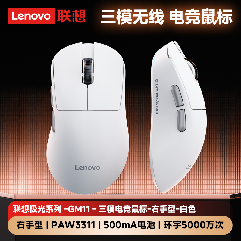 联想极光电竞游戏三模鼠标GM11 右手型 白色