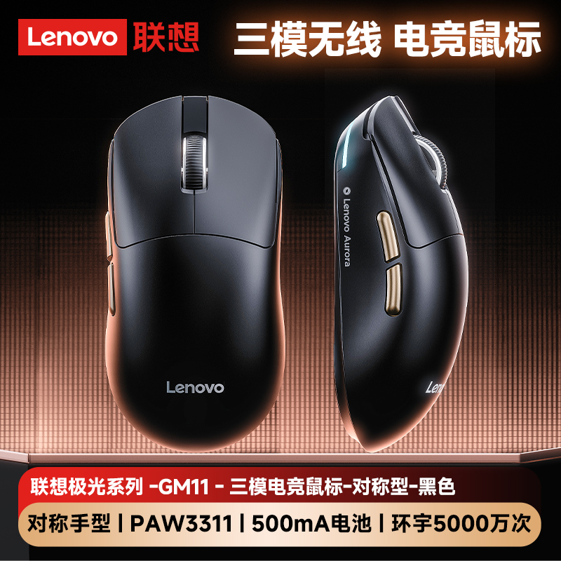 联想极光电竞游戏三模鼠标GM11 对称型 黑色