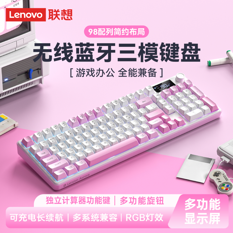 联想极光键盘GK10 Lite 三模版 98键 薄膜 樱霜白
